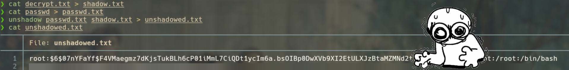 unshadow shadows > unshadowerd.txt