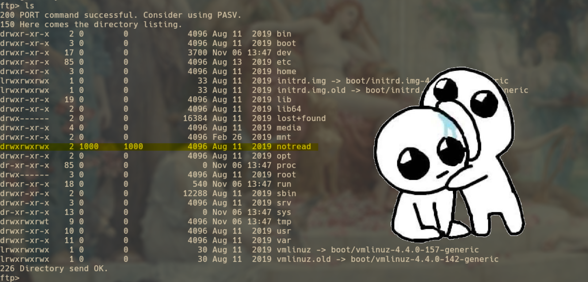 Mientras exploraba el directorio raíz, me di cuenta que había un directorio llamado ‘notread’ y cuando alguien dice que no haga algo, eso significa que debo hacerlo. Así que entramos a dicho directorio que por los permisos podía hacerlo.